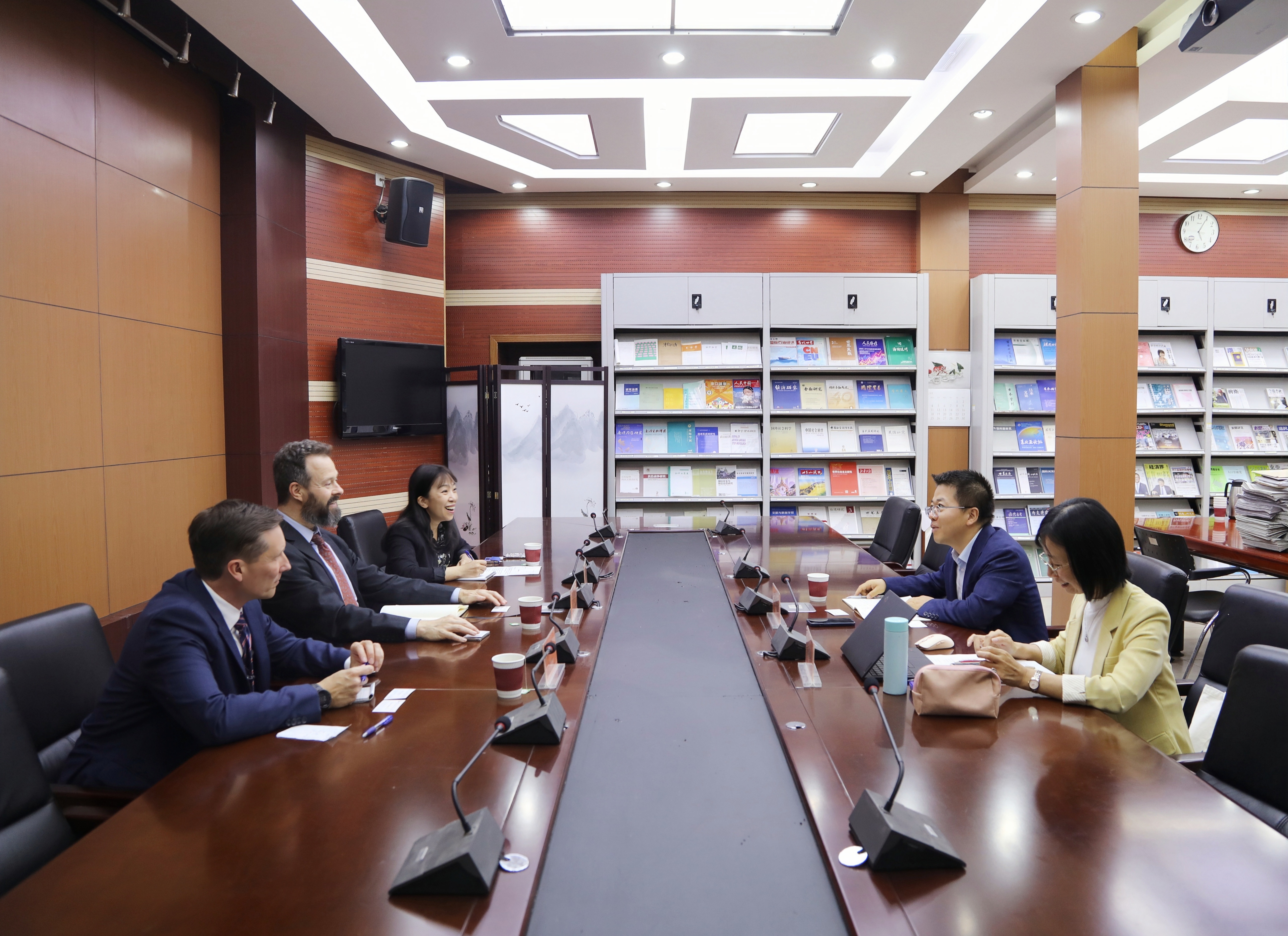2025年9月16日,美国驻华使馆政治处双边/印太组主任马依闻(Ewan Macdougall)、一等秘书郭明耀(Benjamin Grob-Fitzgibbon)等到访日本研究所,与综合战略研究室副主任孟晓旭研究员和外交研究室陈静静副研究员进行交流,双方主要就战后国际秩序的演变、中日美三边关系、“印太战略”等相关问题展开座谈,增进了相互了解。
