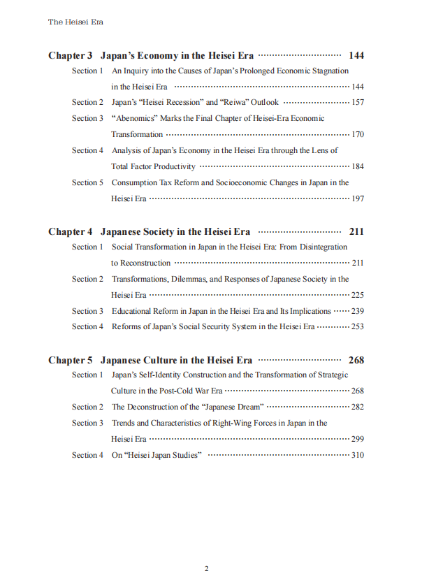 The Heisei Era: A Thirty-Year Trajectory and Outlook for Japan’s Development is a meticulously condensed and translated publication based on the original Chinese version, which is an outcome funded by the first batch of the National Social Science Fund's support program for academic societies. It brings together over 20 leading scholars active at the forefront of Japanese studies. Focusing on Japan's Heisei era (1989-2019), the book employs an analytical framework that interweaves historical longitudinal and disciplinary perspectives, treating the 30-year Heisei period as a distinct phase for comprehensive, multi-disciplinary research. Simultaneously, it adopts a "compound-eye" perspective to conduct in-depth analyses across five critical domains: national strategy, politics and diplomacy, economy, society, and cultural thoughts, constructing a multidimensional system aimed at presenting readers with a comprehensive and authentic picture of Japan. In 2022, the book was selected as a major achievement of the Innovation Project of Chinese Academy of Social Sciences (CASS).